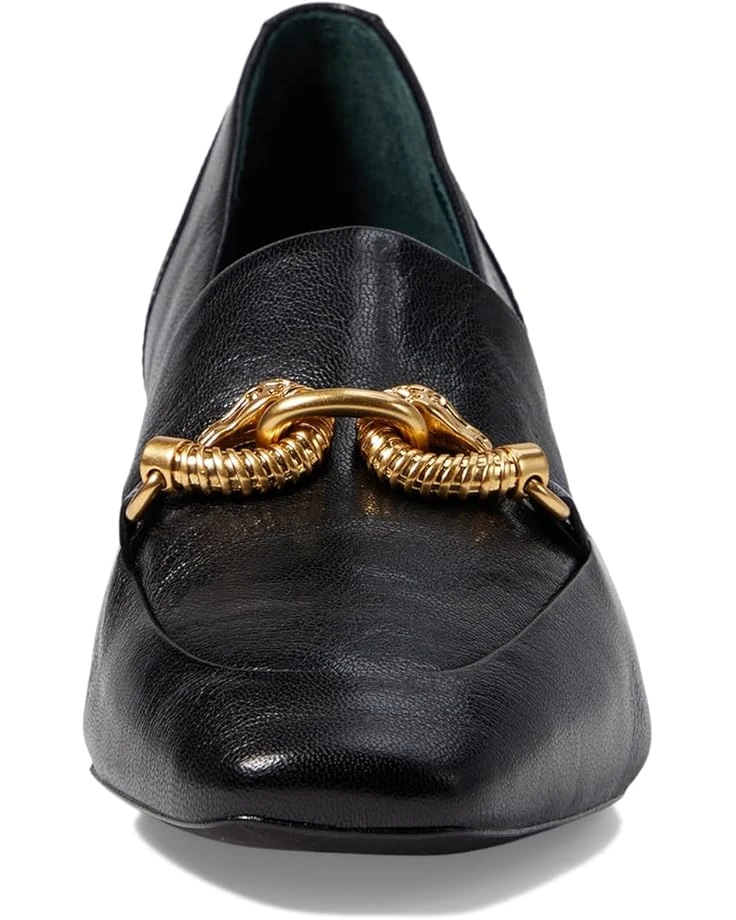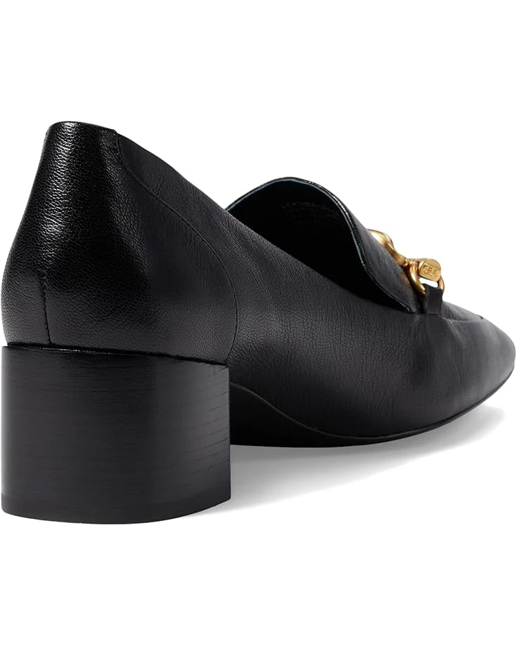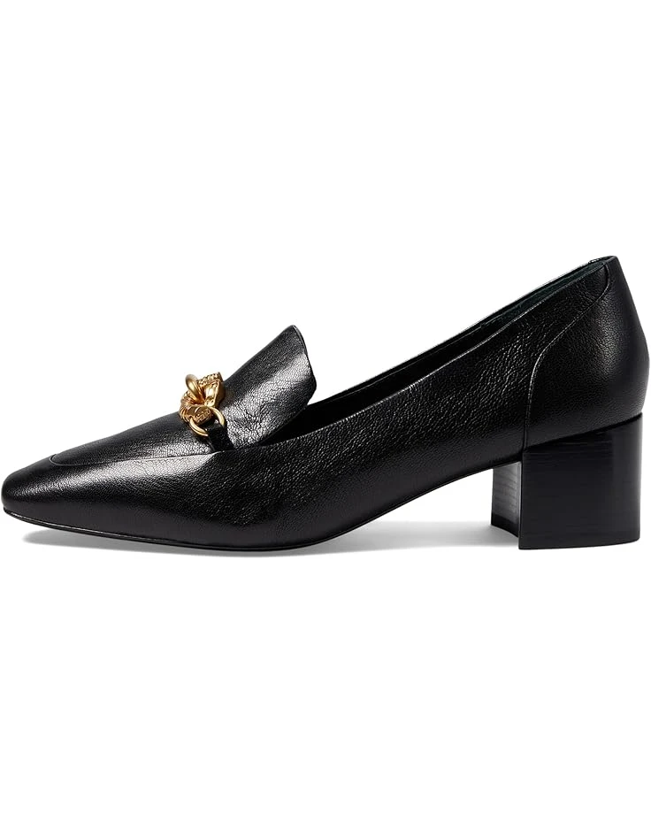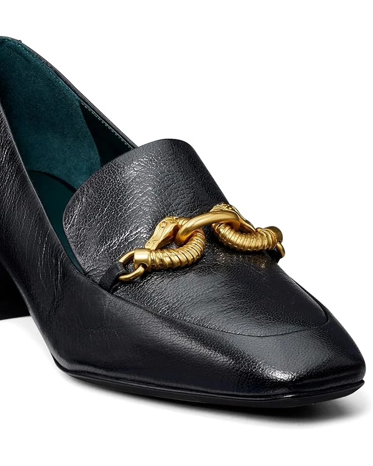 - Enriched by a gleaming metallic horsehead ornament and uplifted by an on-trend block heel, the Tory Burch® 45 mm Jessa Heeled Loafers are something you would love to pair with almost any outfit. The upper and lining of these shoes are made with premium quality leather for a lasting comfort. They are designed in a slip-on style for ease of wear.