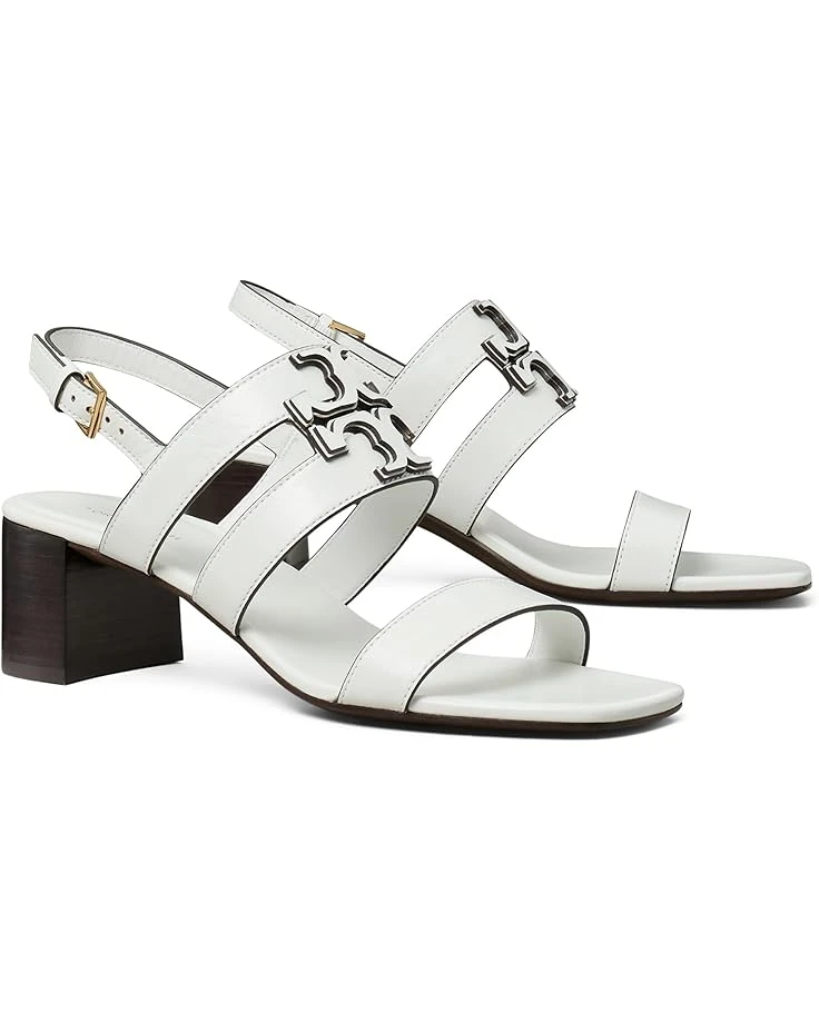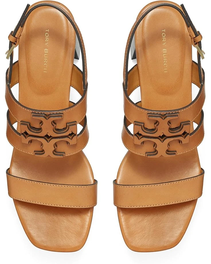 - Walk for the world wearing the comfy Tory Burch® 55 mm Ines Mid Heel Sandals. Crafted from leather upper, lining, and insole, this pair of lightweight sandals features open square toe, block heels, strap detailing on the upper with brand logo, and buckled closure.
