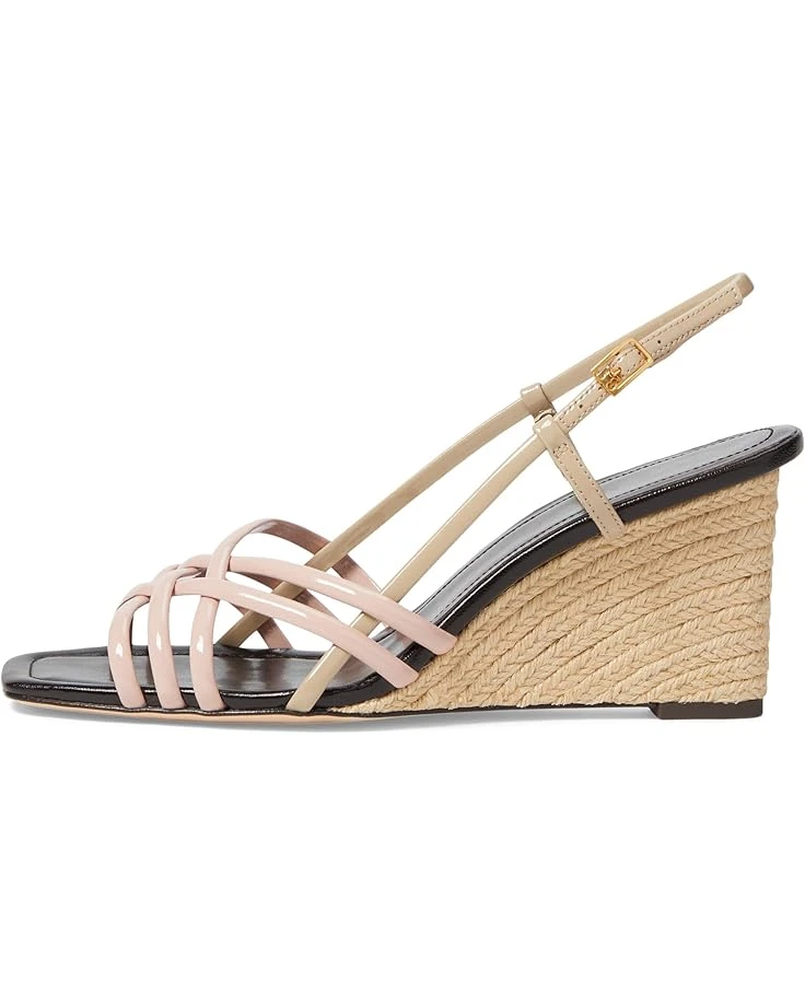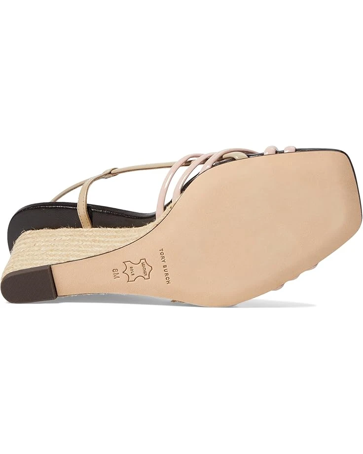 - The Tory Burch® 75 mm Multi Strap Wedge Sandals epitomize contemporary elegance with a blend of style and comfort. Their strappy upper design not only adds a touch of sophistication but also ensures a secure and stylish fit. These open-square toe sandals fashion espadrille-style wedge heels that provide a chic and summery vibe.