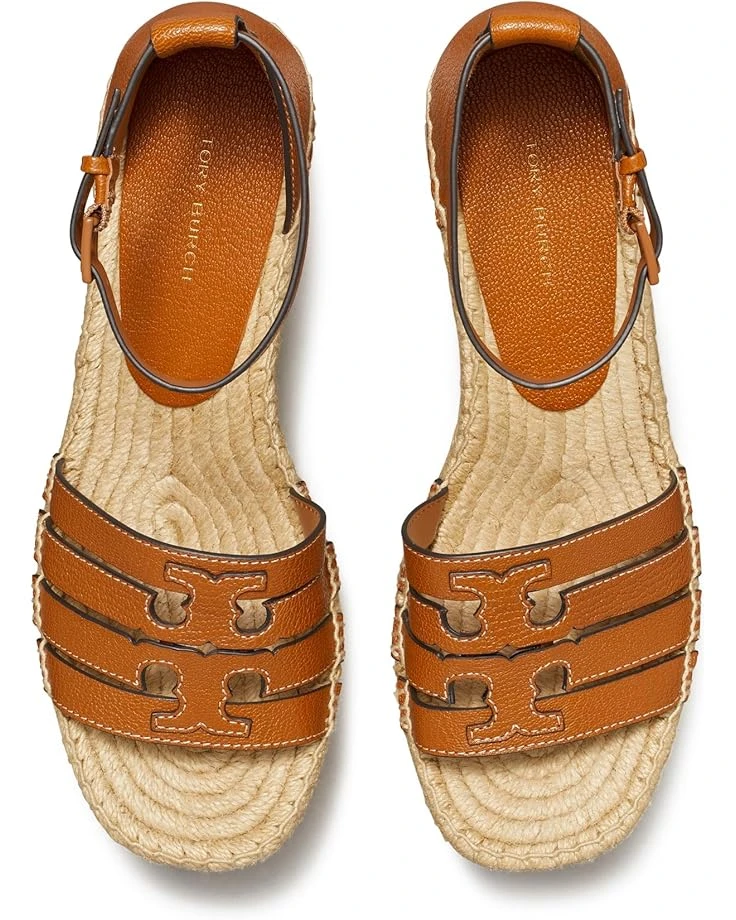 - Leave everyone marvelously astonished as you wear the Tory Burch® 80 mm Ines Cage Wedge Espadrille Sandals. The footwear features leather upper and lining construction with espadrille wedge heels and buckled ankle strap closure.