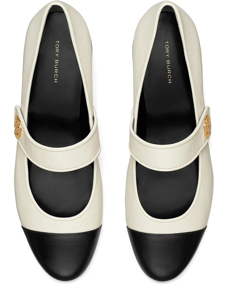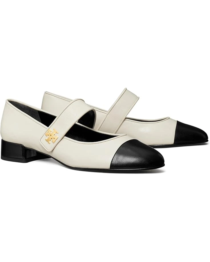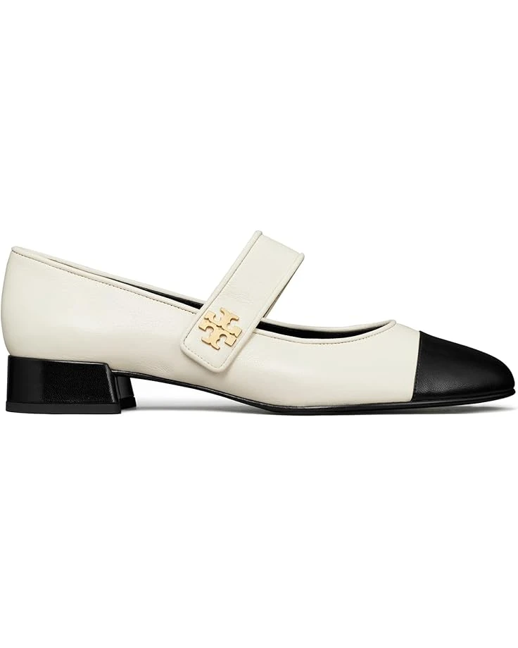- Flaunt a polished and elegant look as you rock the dance floor wearing the Tory Burch® Cap-Toe Mary Jane Heel Ballet 25mm. Crafted with fine leather upper, lining, and insole, these party-ready shoes highlight a sleek and contrasting cap toe beautifully complemented by a block heel. The iconic logo accent on the instep strap adds an extra dose of flair to this footwear.