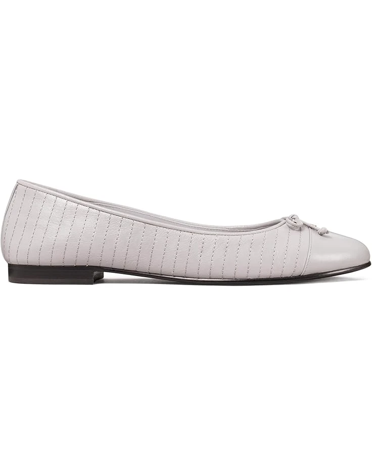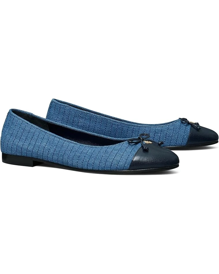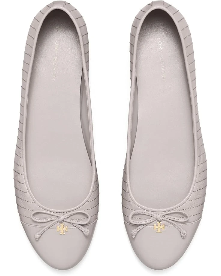 - Indulge in timeless sophistication with the Tory Burch® Cap-Toe Quilted Ballet. Grace your steps with luxury, as soft leather, a chic contrast closed toe, and a dainty bow define elegance. The subtle double T logo with a brand signature, adds a touch of modern flair. Lightweight and leather-lined, these pull-on flats embody comfort and style.