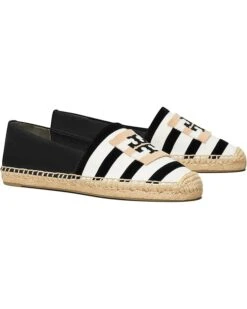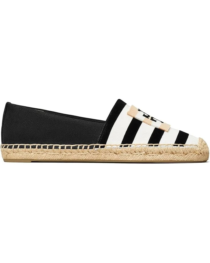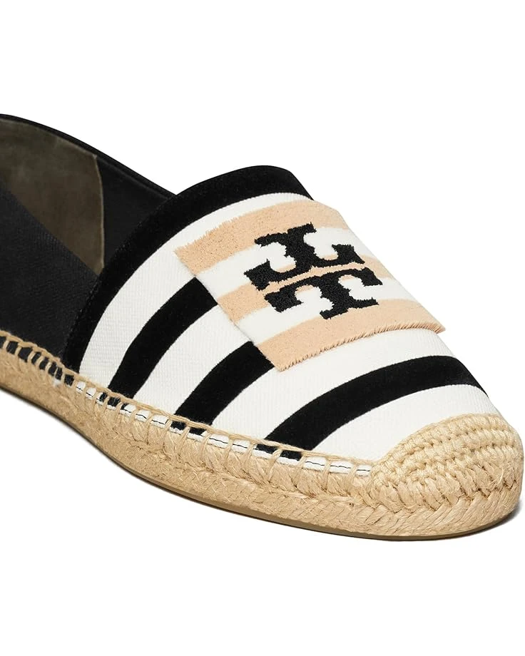 - Perfect to pair with your midi dresses and casual outfits, stay comfortable and stylish by wearing the Tory Burch® Double T Espadrille shoes. Featuring braided detail at the toe and sole edge, these lightweight espadrilles make a great addition to your footwear collection. The leather insole and fabric lining of these shoes make them comfortable for all-day wear. These lightweight shoes feature fabric upper with a jacquard-striped pattern. Stay breezy and cool by wearing these espadrille shoes.