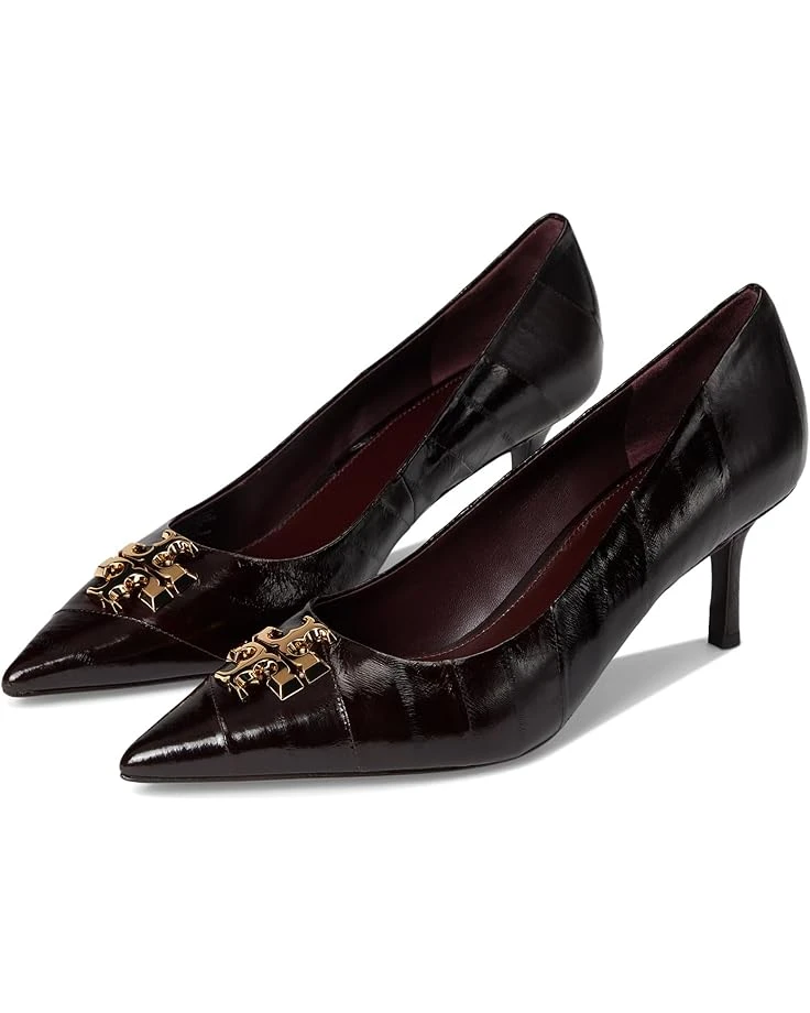 - Get ready to step out in style choosing the Tory Burch® Eleanor Pumps 65MM. Made with premium leather upper and lining, these pumps are designed for both comfort and durability. The sleek pointed toe design and stiletto heels give you an effortlessly chic look, perfect for any occasion. And let’s not forget the iconic Tory Burch logo embellished on the upper – a true statement piece.
