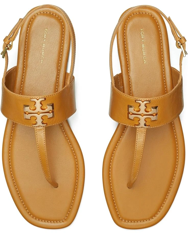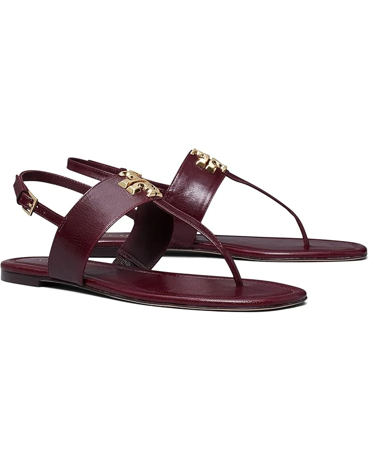 - Finish your look with an iconic touch and walk with extreme comfort wearing the Tory Burch® Eleanor Sandals. Designed with a leather upper, lining, and insole, these versatile and lightweight shoes come with an open toe, a metallic logo accent on the upper, and an adjustable buckle closure on the ankle strap.