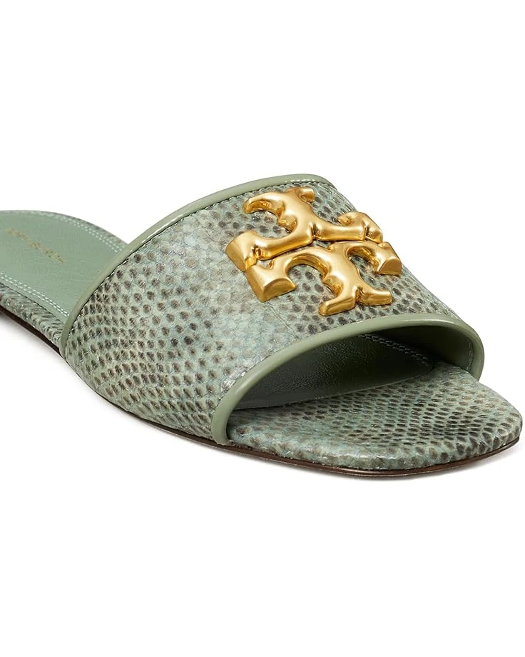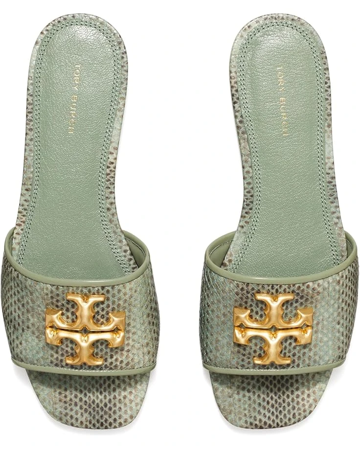 - Go about places in absolute style wearing Tory Burch® Eleanor Slides that come in a lightweight construction and easy slip-on fit. The slides are crafted with a genuine leather upper, chromium-free napa leather lining, and cushioned leather insole.The oversized metal brand logo detailing on the upper gives it a statement look.