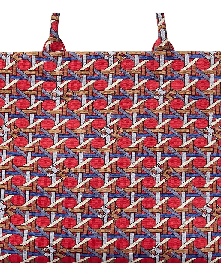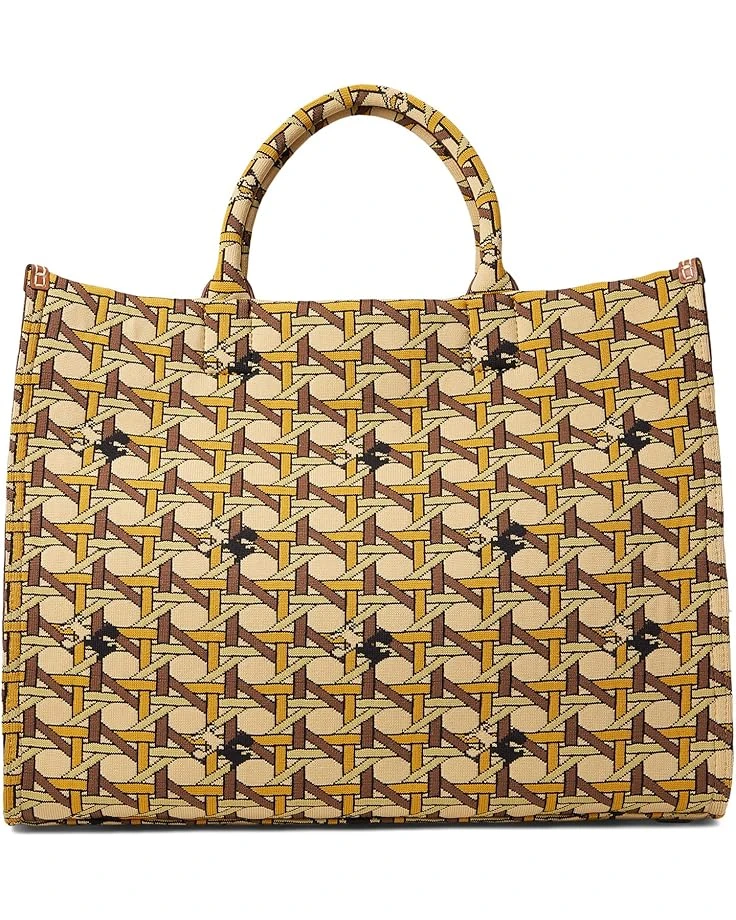 - Pack your favorite items for the next event carrying the Tory Burch® Ella Circular Knit Tote Handbag.