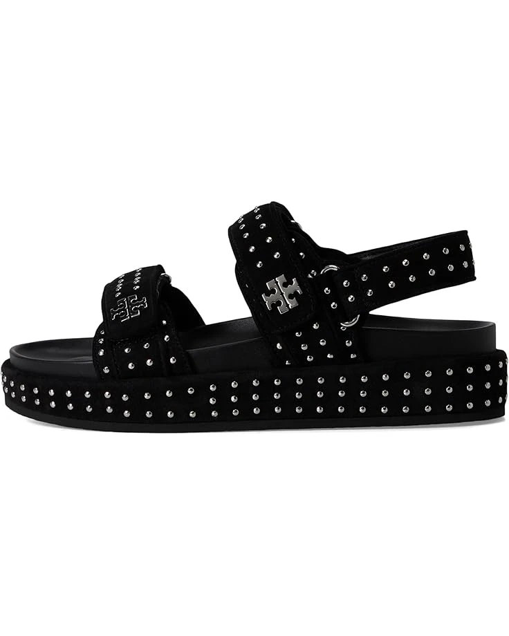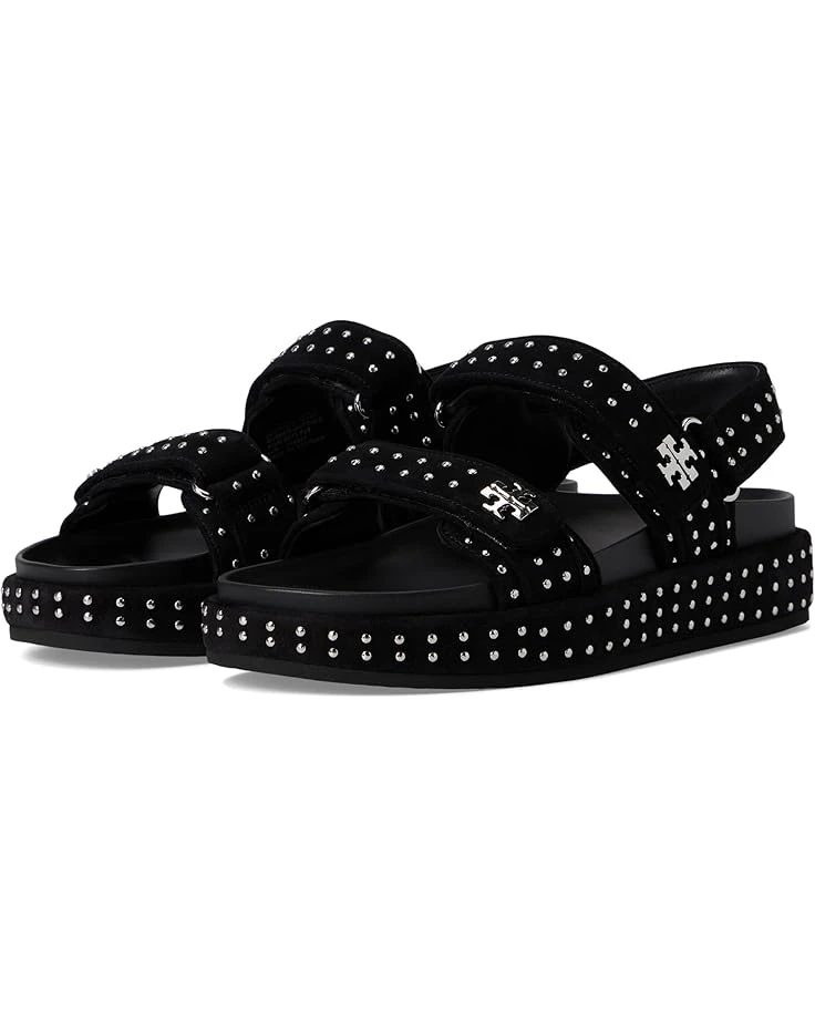 - Elevate your chic warm weather style in the Tory Burch® Kira Stud Sport Sandal. Featuring a hook-and-loop strap closure with stud detailing throughout, open toe silhouette, suede upper, leather lining, and a molded leather insole.