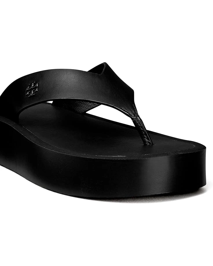 - Enjoy all-day comfort while flaunting your love for that retro-inspired style donning the Tory Burch® Leather Platform Flip Flops. A must-add to your warm weather wardrobe, these ultra-comfy and lightweight shoes are designed in a classic thong silhouette with leather upper, lining, and insole.