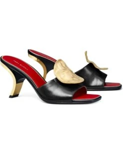 - Make your fashion antidote quite extraordinary wearing the Tory Burch® Patos Mismatch Heel Sandal 80mm. The slip-on footwear features leather upper with vintage metal disc ornaments and sculptural curved heels.